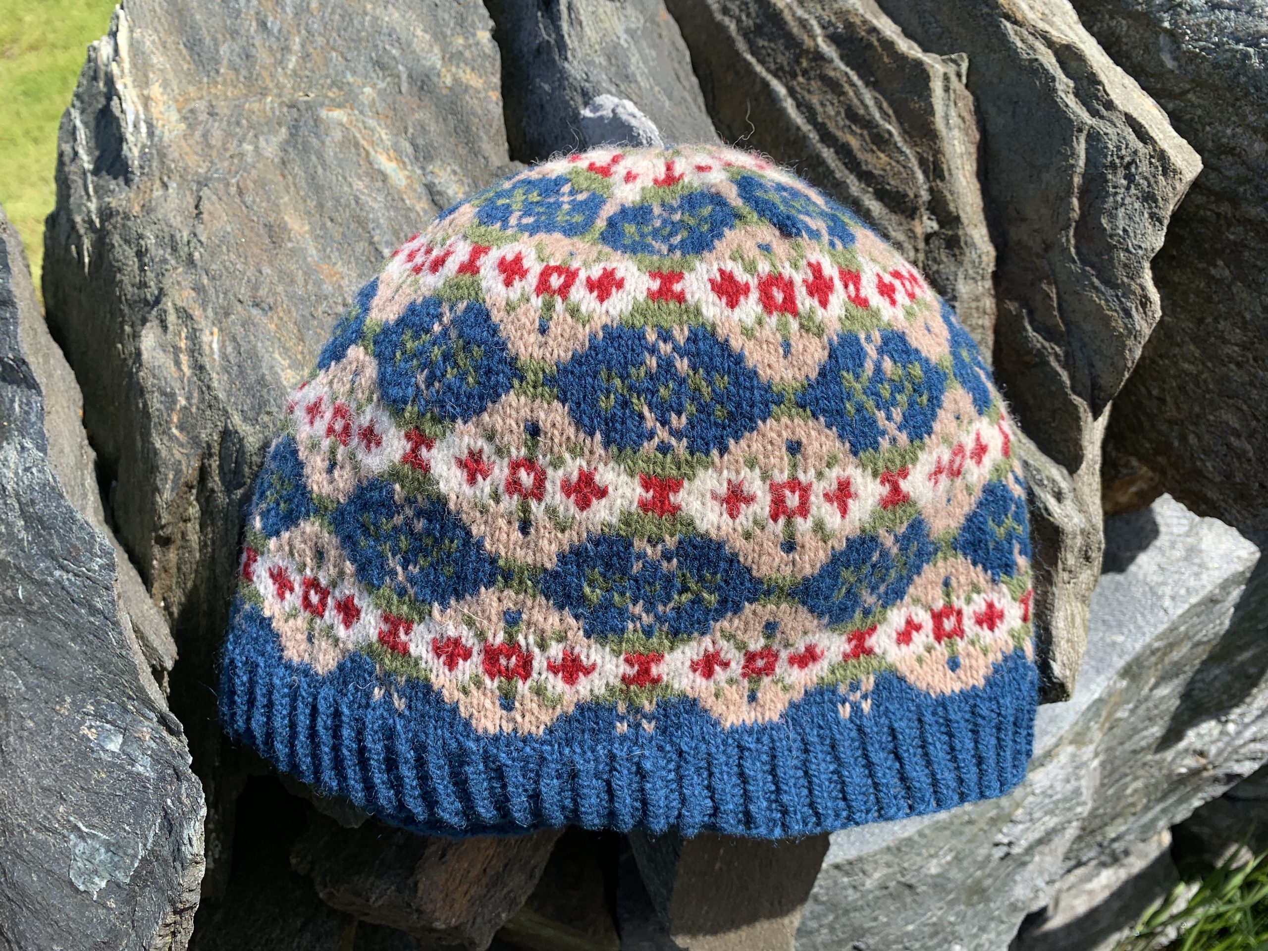 This kit includes all the yarn needed to knit the hat in Laxdale Yarn colours, as well as a printed pattern:
